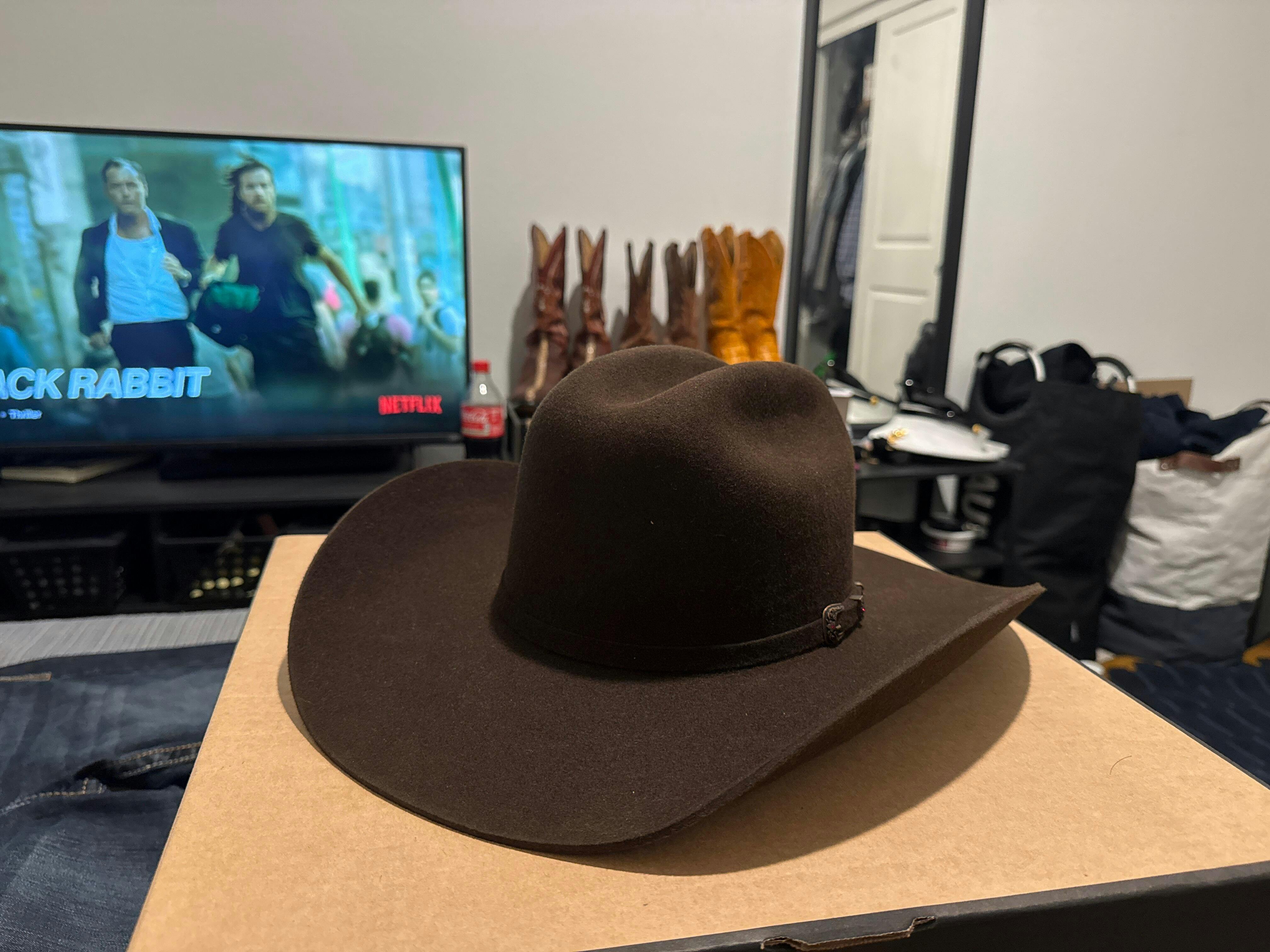 I had the brim cut to 3 7/8” and reshaped. Looks better in person