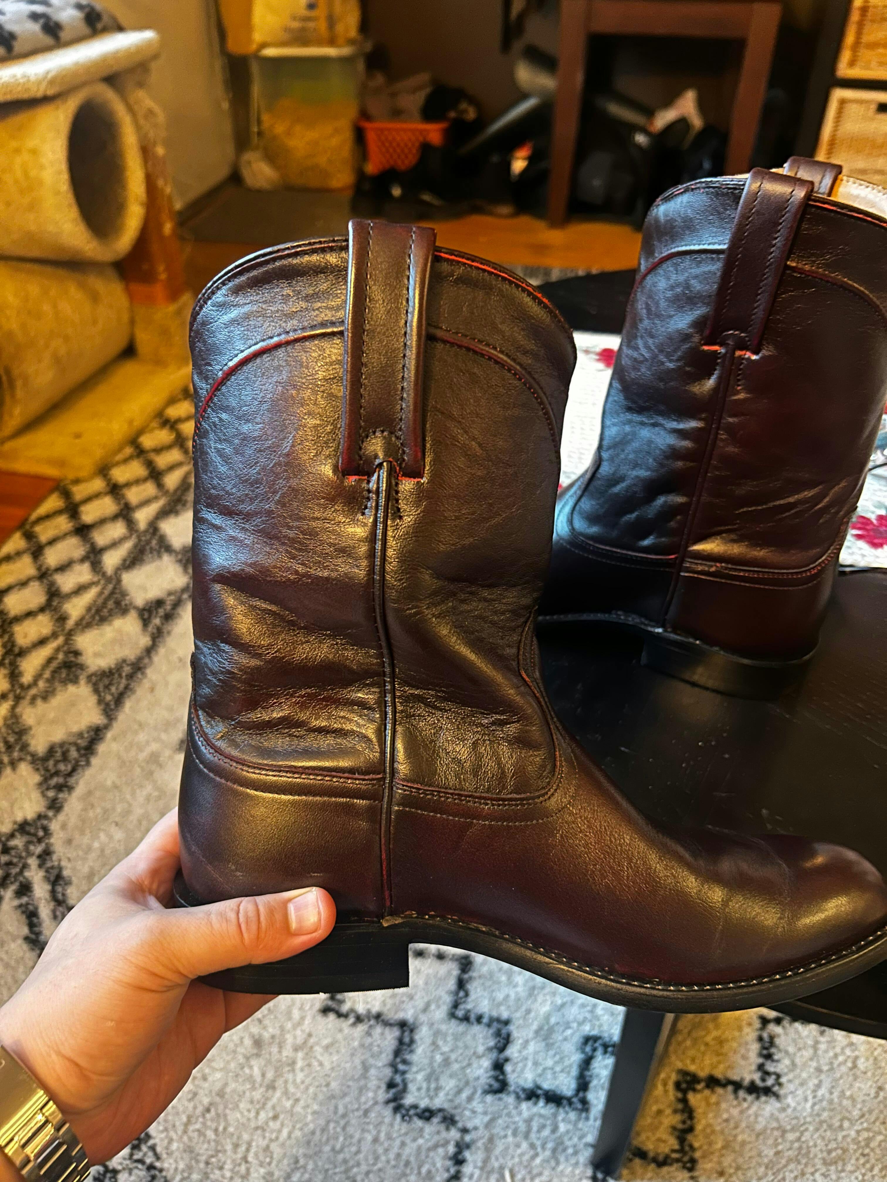 Photos on this website don't do these boots justice! They are outstanding in person. Perfect color, fits true to size, comfortable leather. Everything you'd hope a boot to be.