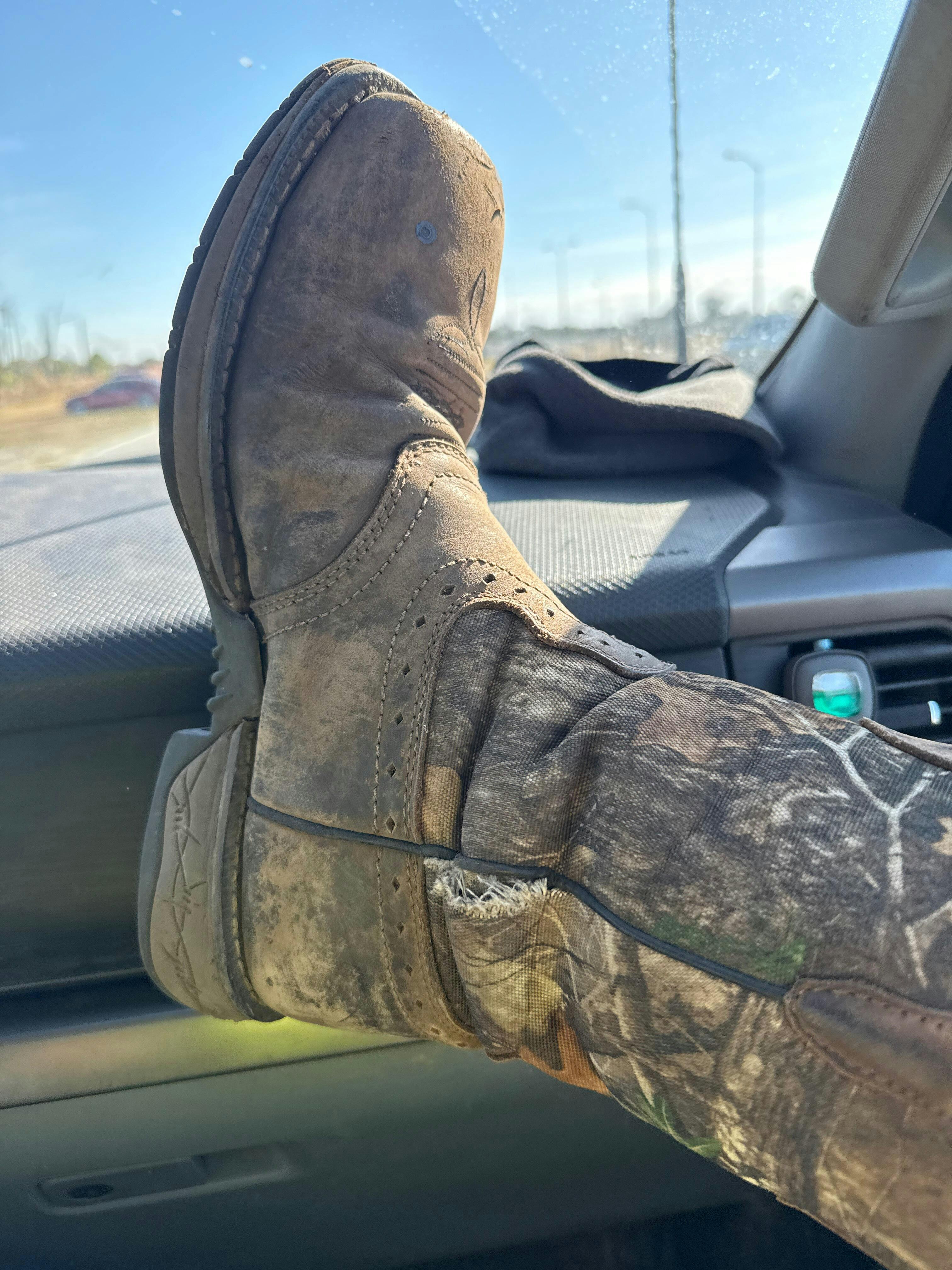 Wore these boots for 4 months the first puddle I stepped in my feet got soaked and the side stitching is ripping after 5 months don’t buy!!